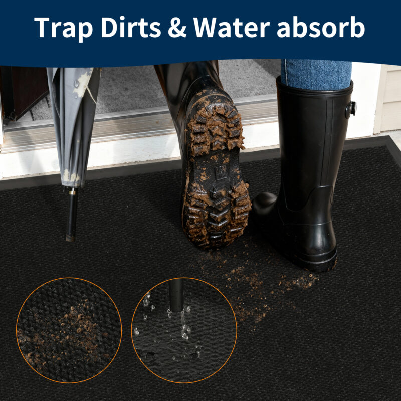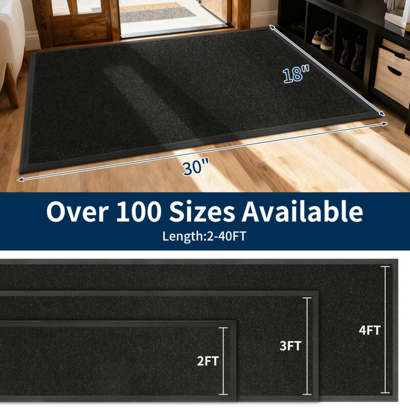 Heavy Duty 18×30 Outdoor Welcome Mat – Waterproof, Non-Slip, Dirt-Trapping Entry Rug (Black)